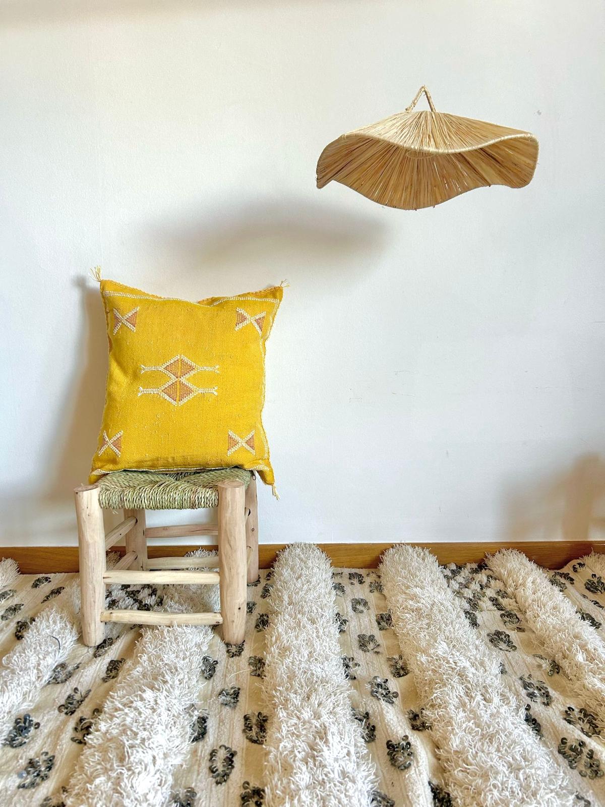 PANIÈRE DE RANGEMENT À LINGE BERBÈRE EN PALMIER ET LAINE BLANCHE 60CM MODÈLE ESSAOUIRA